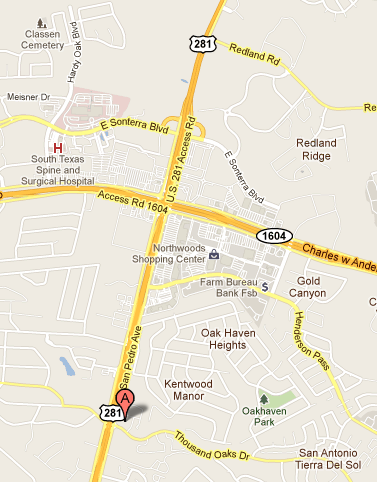 We are located in the Park Oaks office building located on the north corner of Hwy 281 and Thousand Oaks.